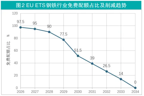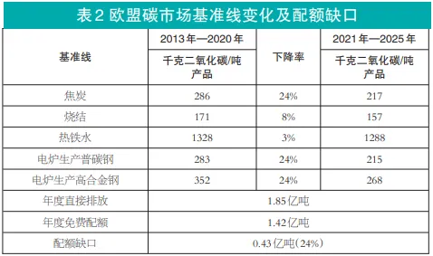 目前,欧盟钢铁企业获得的免费碳配额比例为100%,无须进行拍卖,但是免费碳配额不能覆盖企业的实际碳排放。欧钢联(EUROFER)报告显示,欧盟钢企免费碳配额仅能覆盖企业碳排放的76%,剩余24%需要通过交易购买。