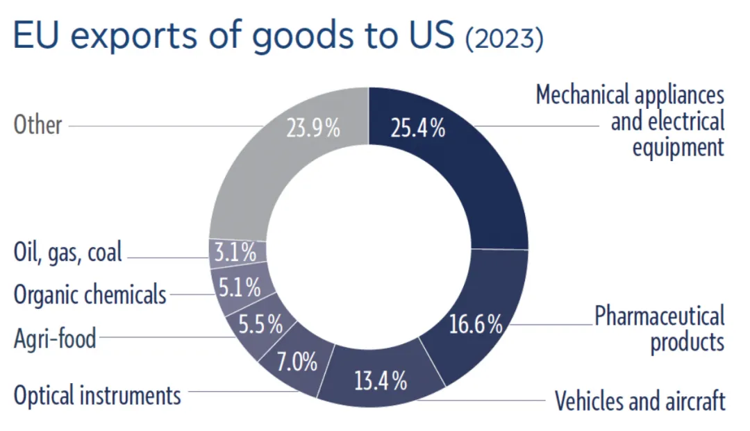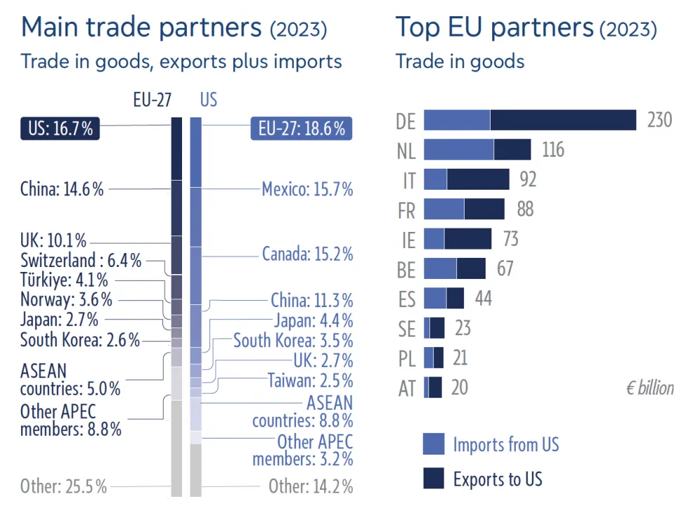 图1. (左)2023年美国与欧盟互为最大贸易伙伴。