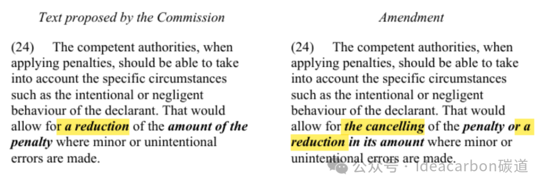 原来的提案中,主管当局可以根据申报人的故意或过失行为进行衡量,在出现轻微或无意错误时减少处罚金额,本次修正案中,将放宽至免除或减少罚金,这在一定程度上增大了进口商的容错率。