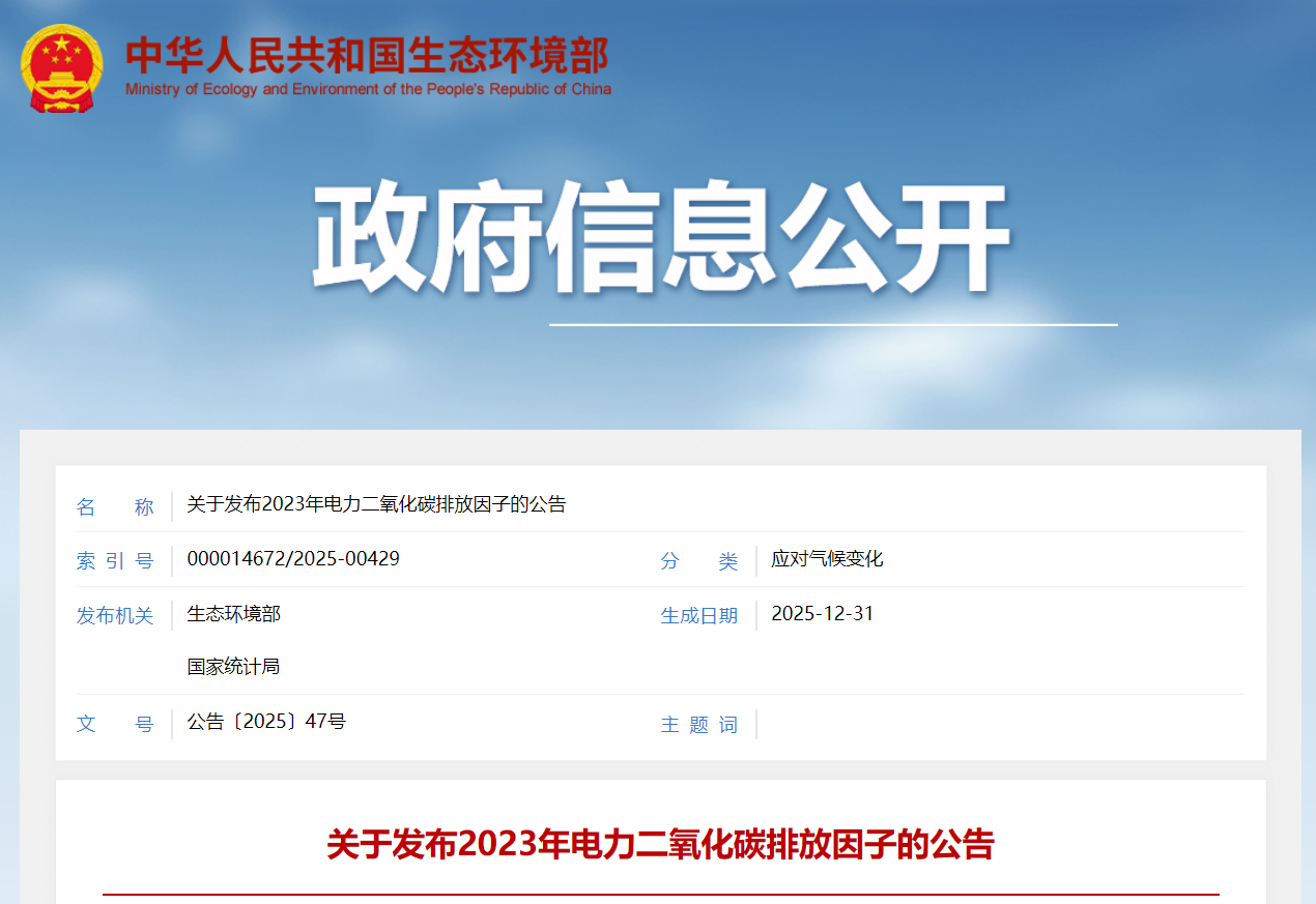 关于发布2023年电力二氧化碳排放因子的公告